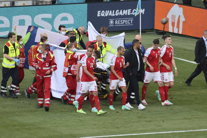 Denmark's christian eriksen may have to stay in hospital for two more days but is making a good recovery, agent says. (ozan kose, pool via ap) Christian eriksen was gone before being resuscitated from cardiac arrest, denmark's team doctor said at a press conference sunday. Denmark's christian eriksen is taken away on a stretcher after collapsing on the pitch during the euro 2020 soccer championship group b match between denmark and finland at parken stadium in. Christian eriksen has been discharged from hospital after undergoing a successful operation, the danish football association confirmed on friday. Further reading euros matchday live: Eriksen, who collapsed during a euro 2020 game on saturday, will have a defibrillator implanted, denmark's team doctor said. Denmark falls to belgium as both teams cheer christian eriksen. The fans at parken stadium are planning a loud ovation for eriksen in the 10th minute of the euro 2020 game because the midfielder wears the no. Denmark's christian eriksen awake, stable after collapsing on field at euro 2020 lorenzo reyes, usa today 6/12/2021 many americans were looking forward to a carefree summer. Denmark midfielder christian eriksen was rushed to hospital after collapsing during his side's euro 2020 opening match with finland and being given cpr on th. Danish supporters hold a banner for christian eriksen, during the euro 2020 soccer championship quarterfinal match between czech republic and denmark, at the olympic stadium in baku, saturday, july 3, 2021. Denmark star christian eriksen was discharged from a copenhagen hospital friday, six days after suffering cardiac arrest on the field during his team's euro 2020 opener and having…